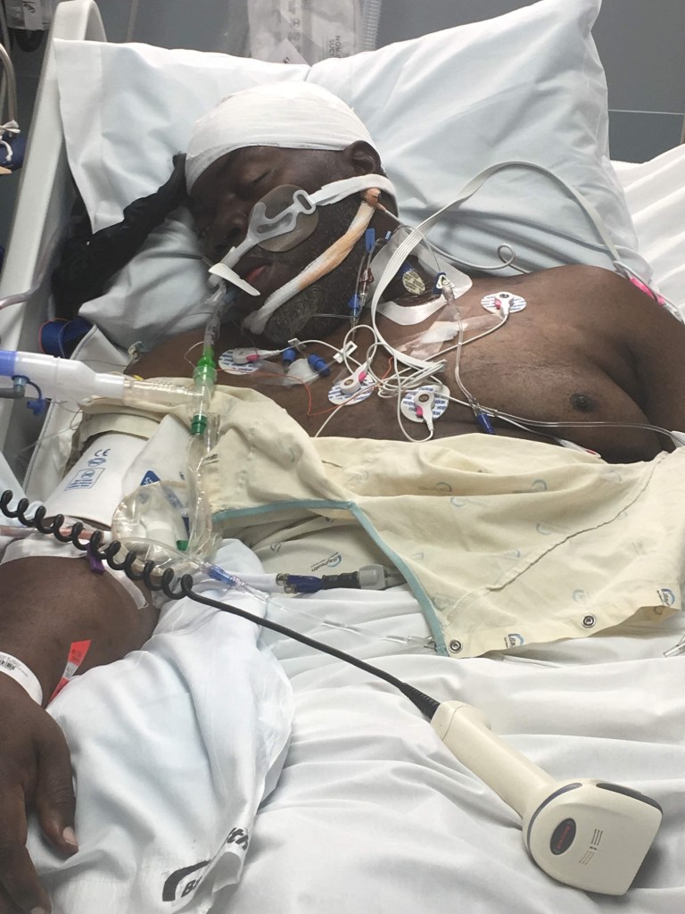 Once they got the tube placed back in and I had calmed down I went back into the room and had the last form of communication that I would ever had with Pharon. At this point he had suffered 14 strokes and 4 aneurysms. He was mostly blind and could only see what would be equivalent to a pixel or two at a time but never the whole picture. His eyes were open and I could see them. I took a video while I was talking to him. I had been taking a lot of pictures of everything because when he got home and needed to see how far he had come I would be able to show him. He couldn’t talk and he couldn’t see me. I asked him to wink for yes.